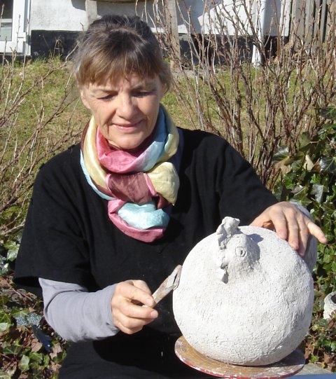Sideløbende hermed arbejder jeg med keramik (stentøj og raku), såvel skulpturer og figurer som krukker, skåle og fade mm.